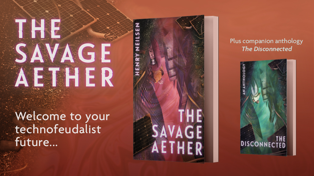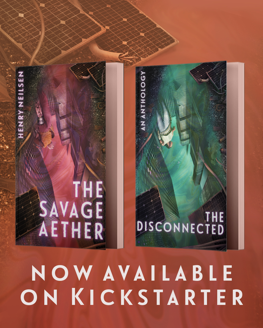 I am extremely proud to present my new novel THE SAVAGE AETHER and its companion anthology THE DISCONNECTED, now available on Kickstarter via the button below. I would love it if you were willing to pledge to get your own copy of the novel, the anthology, or (ideally) both!